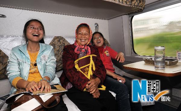 4月26日,在福厦铁路开行的首趟动车上,几位福建泉州的乘客享受开心旅程。当日,总投资152.59亿元、全长274.9公里的福(州)厦(门)高速铁路正式开通运营。新华社记者张国俊摄